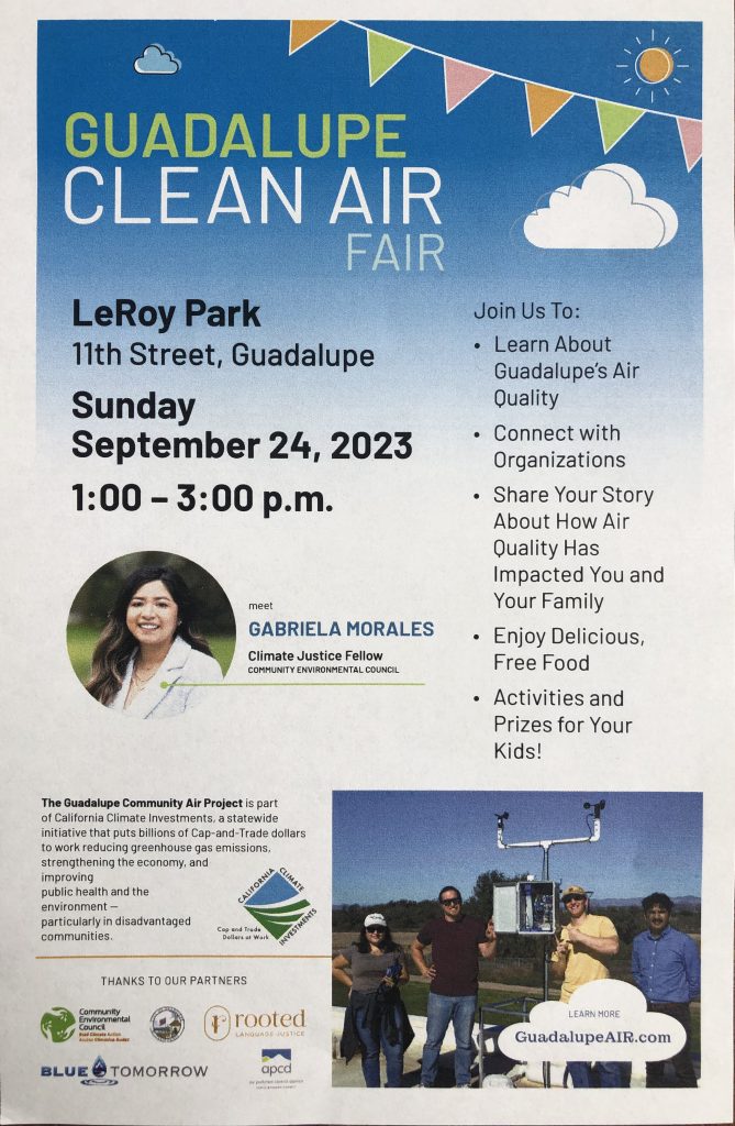 On September 24th from 1:00 to 3pm, Join the Community Environmental Council at the Guadalupe Clean Air Fair from 1pm – 3pm at LeRoy Park.